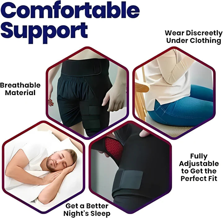TheΒ Sciatica Relief Hip BraceΒ is made with breathable fabric and fully adjustable straps, giving you support without restricting movement. Wear it discreetly under clothing at work, while resting at home, or even during sleep. Wherever you go, this brace moves with you, keeping you comfortable and supported all day long.