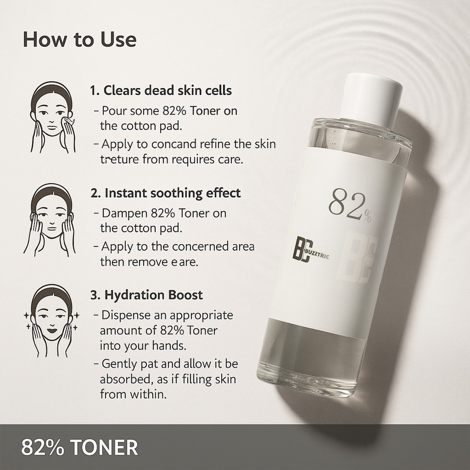 Its clean and minimal formula ensures that your skin receives pure nourishment without harsh chemicals. For those with sensitive or acne-prone skin, Buzztric Heartleaf 82 Soothing Toner is the perfect solution for achieving a healthy, radiant complexion.